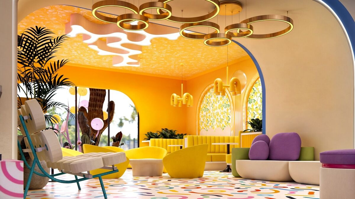 Welcome to a candy store like no other — a playful, desert-inspired paradise bursting with vibrant colors and whimsical charm. This pop-up space features bold colored architecture, oversized candy-themed graphics, and quirky sculptures.