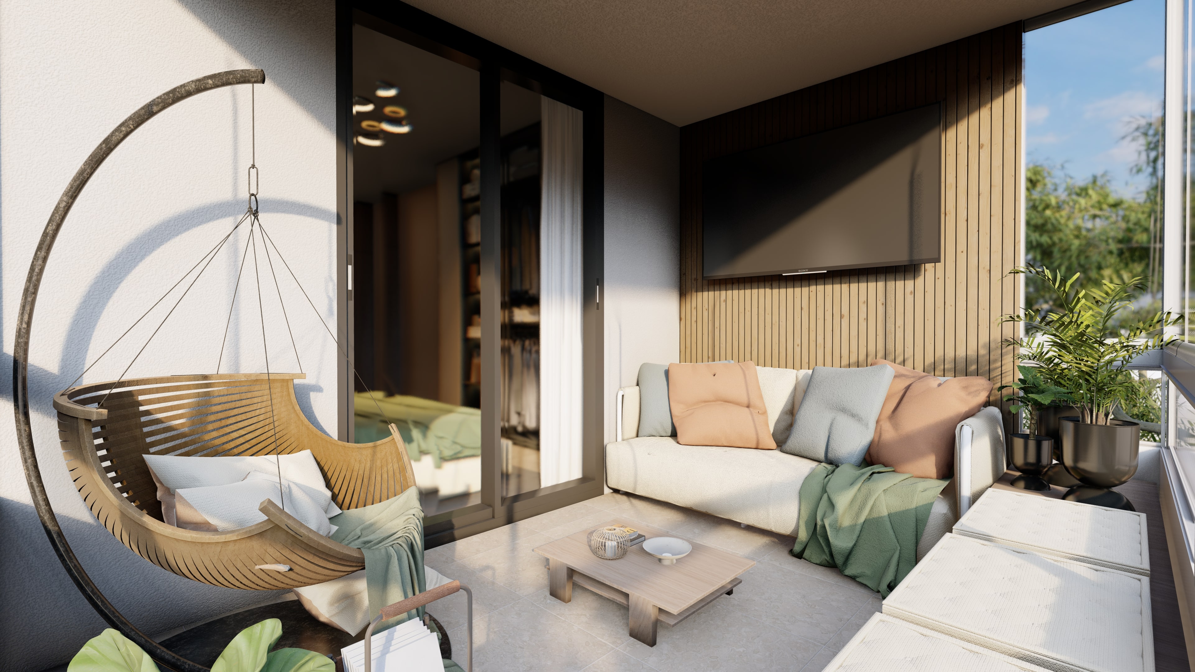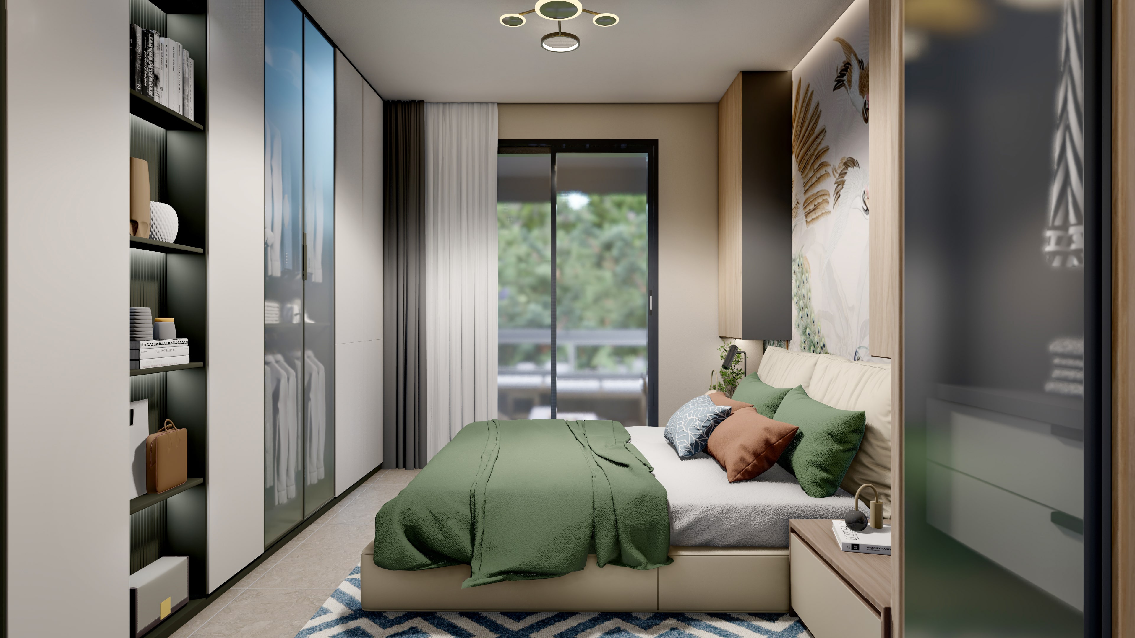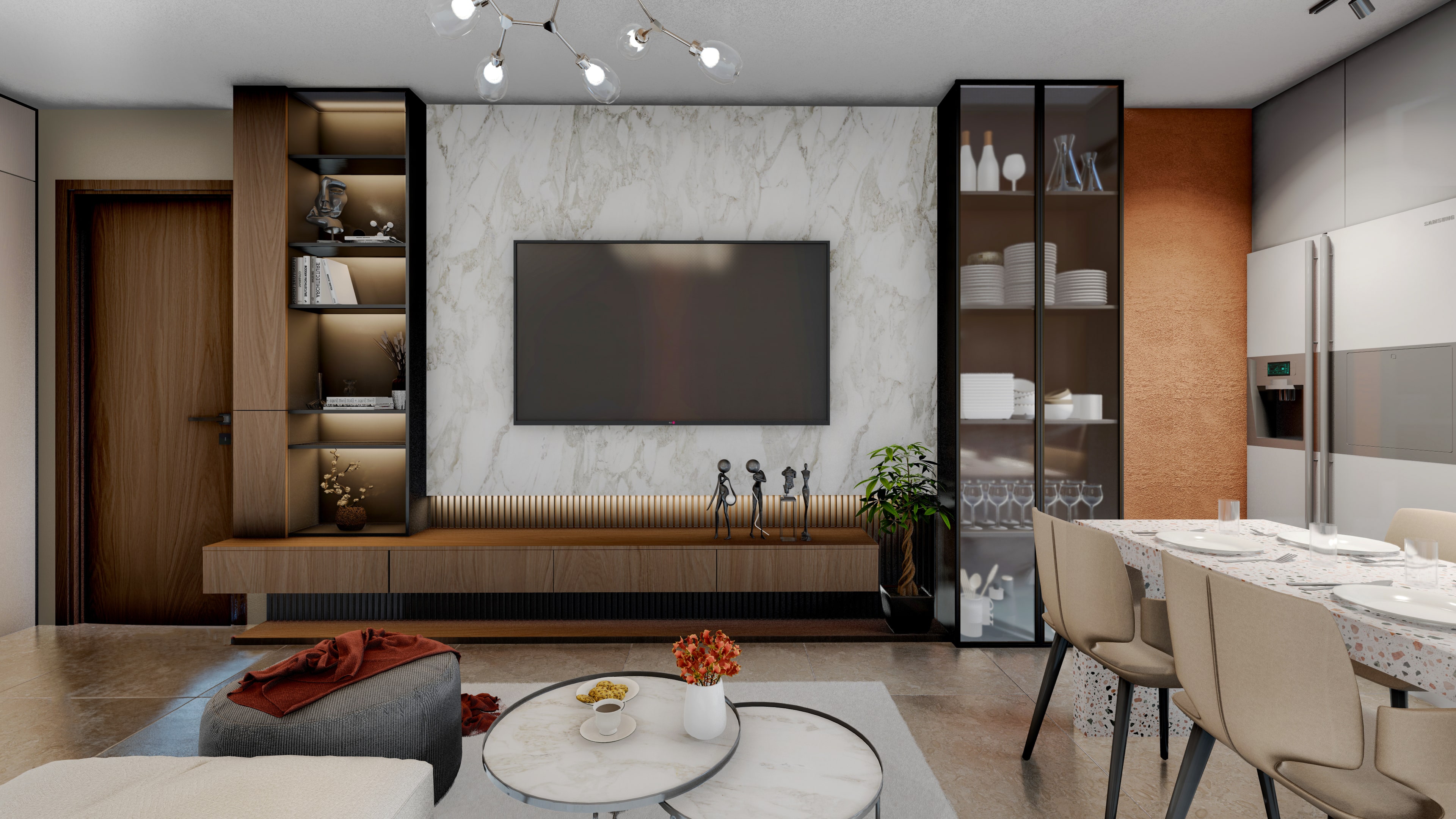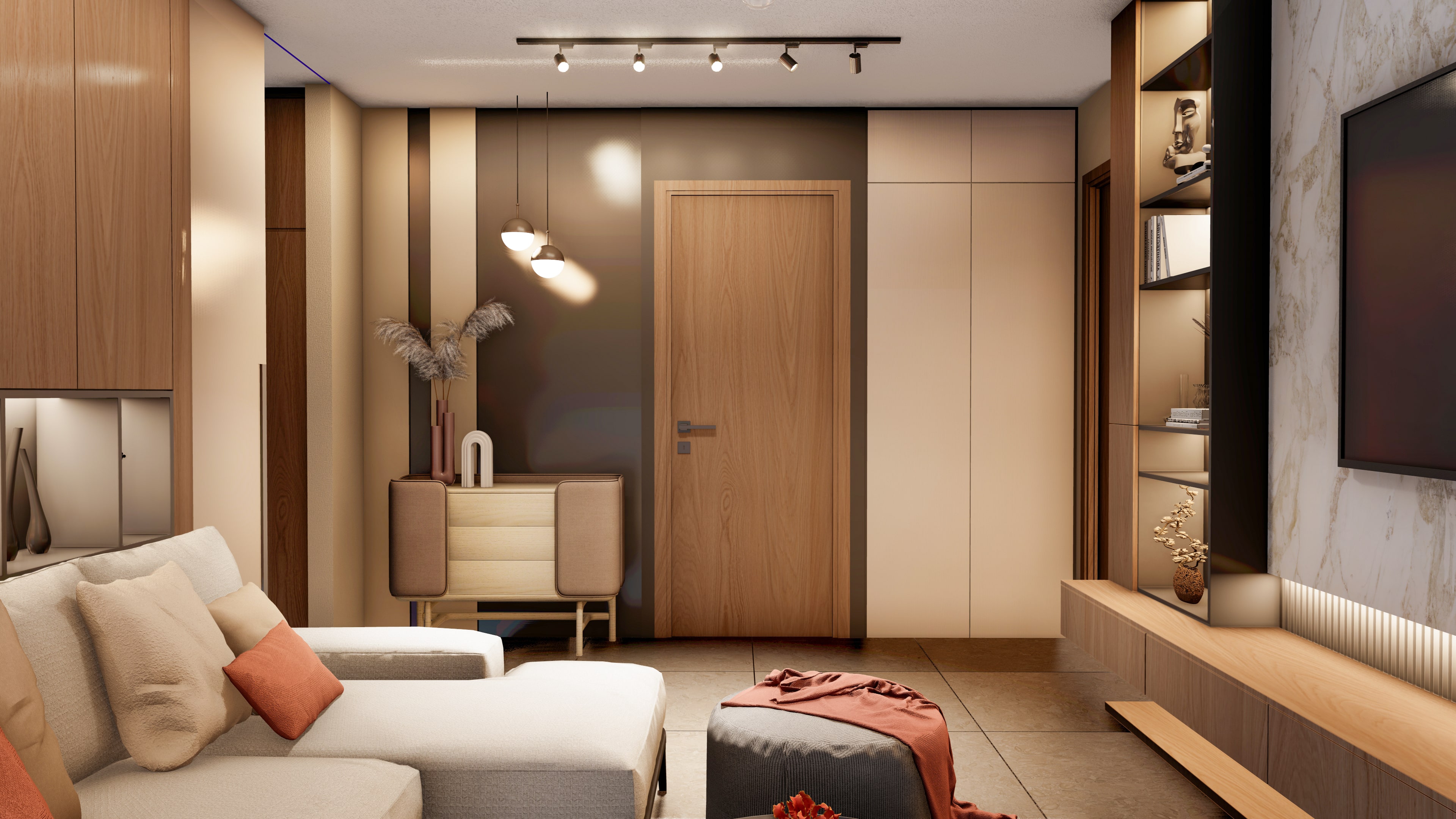 Natural materials like wood and terrazzo bring texture and playfulness, while warm tones, cozy fabrics, and greenery infuse the space with a welcoming, lived-in atmosphere. Smart spatial planning and custom built-ins ensure every corner is maximized without compromising aesthetics. The result is a compact yet dynamic home that reflects the personality of its owner—youthful, grounded, and full of life.