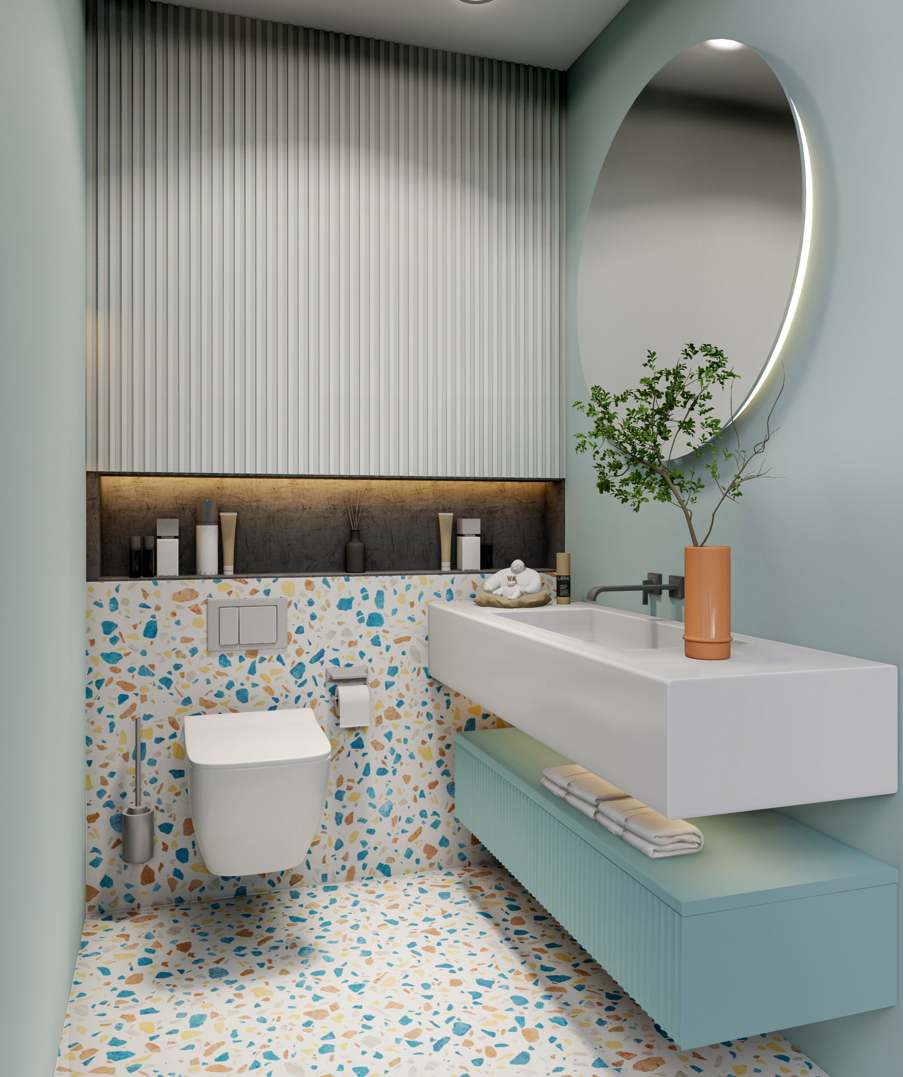 This full renovation project transforms a compact one-bedroom studio in Ajaltoun into a vibrant and modern living space tailored for a young, energetic client. The design is rooted in creating a home that feels fresh, warm, and expressive—balancing functionality with character.